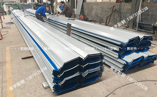 按扣式彩鋼瓦通常也被稱之為彩鋼角馳,今天給大家展示的是760型的按扣式彩鋼瓦!