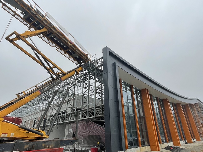 發(fā)布時(shí)間:2022-4-8來(lái)源:桁架樓承板_鋁鎂錳板_彩鋼板_【常宇彩鋼】作者:桁架樓承板_鋁鎂錳板_彩鋼板_【常宇彩鋼】瀏覽次數(shù):(0) 鳳凰高鐵站高空現(xiàn)場(chǎng)壓瓦 履帶式高空壓瓦舉升機(jī)很大程度上緩解了和解決了以往屋面瓦上瓦的諸多環(huán)節(jié)以及人工上瓦等弊端,讓整個(gè)制瓦過(guò)程顯得尤為簡(jiǎn)單,不僅如此解放了地面的一些人工,全部進(jìn)行屋頂搭建大大加快了工作進(jìn)程,超長(zhǎng)跨度的瓦片也讓安裝簡(jiǎn)單了許多,已經(jīng)成為目前鋼構(gòu)屋面瓦搭建中不可或缺的一部分.