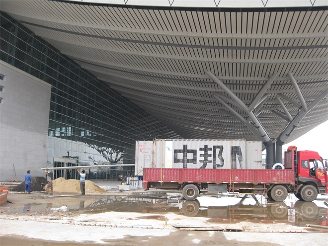 2016.7.16日,常宇彩鋼YX65-400直立鎖邊設(shè)備裝車出廠,前往長沙武廣高鐵站現(xiàn)場加工YX65-400型鋁鎂錳板。板長達30米。