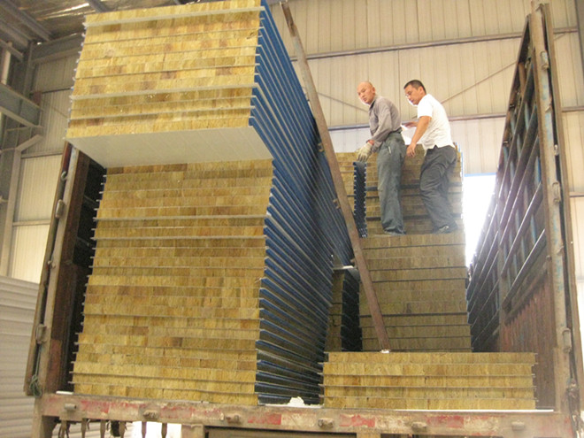 彩鋼巖棉夾芯板分機(jī)制板和手工板二種,彩鋼夾芯板是由內(nèi)外兩層彩色涂層鋼板作面層,通過(guò)自動(dòng)復(fù)合成型機(jī),在鋼板上涂刷粘合膠水,同時(shí)在板兩側(cè)嵌入薄壁槽鋼,經(jīng)加壓、落料而成板材。