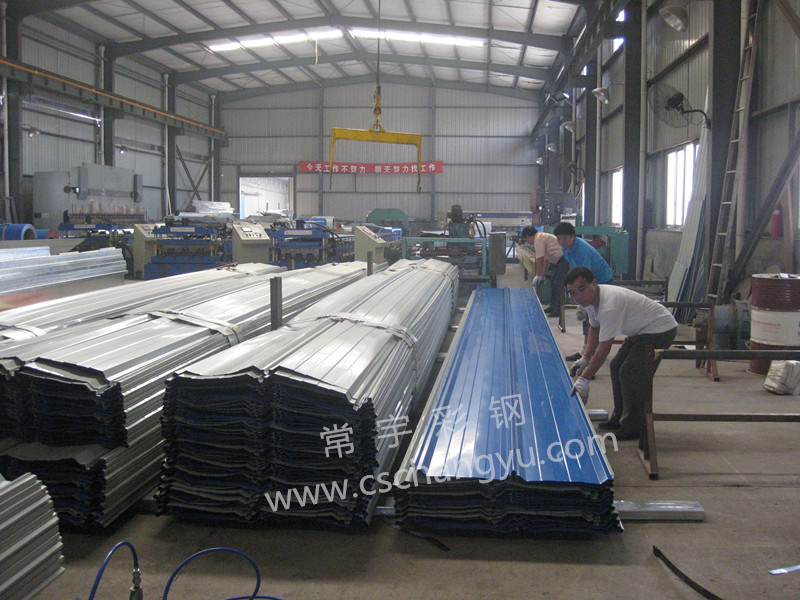 長沙820型暗扣式彩鋼瓦應(yīng)用案例_雨花區(qū)跳馬連跨鋼結(jié)構(gòu)廠房