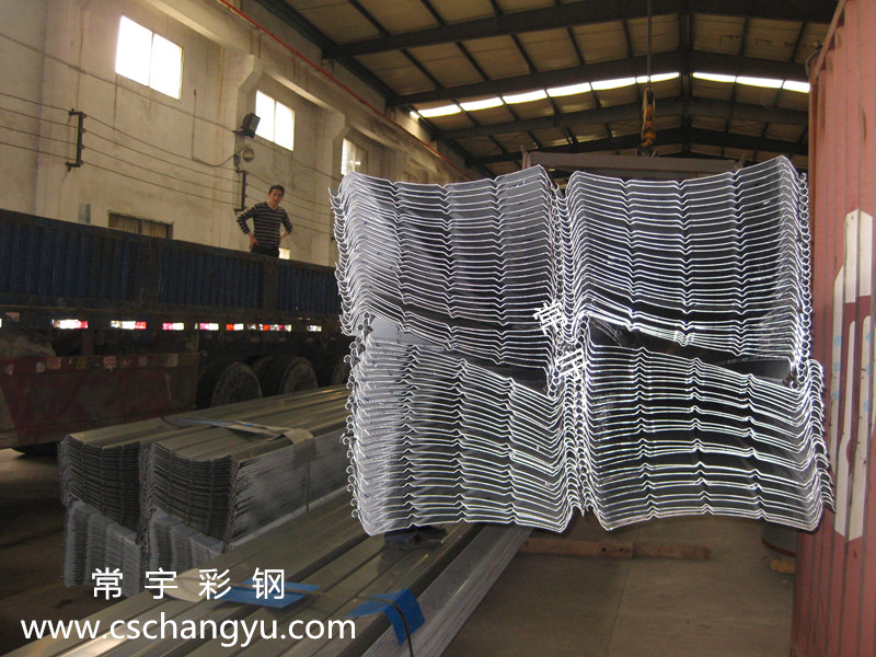 圖為長(zhǎng)沙常宇彩鋼直立鎖邊65/430鋁鎂錳板出貨:板長(zhǎng)達(dá)15米。顏色白銀灰。