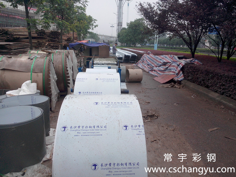 直立鎖邊與鋁鎂錳卷于6月11日到達婺城區(qū)金華火車西站現(xiàn)場,施工人員各自忙碌著,由此滬昆高鐵杭長段第一塊直立鎖邊鋁鎂錳屋面板開始誕生。圖為現(xiàn)場實拍。